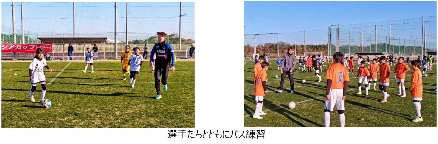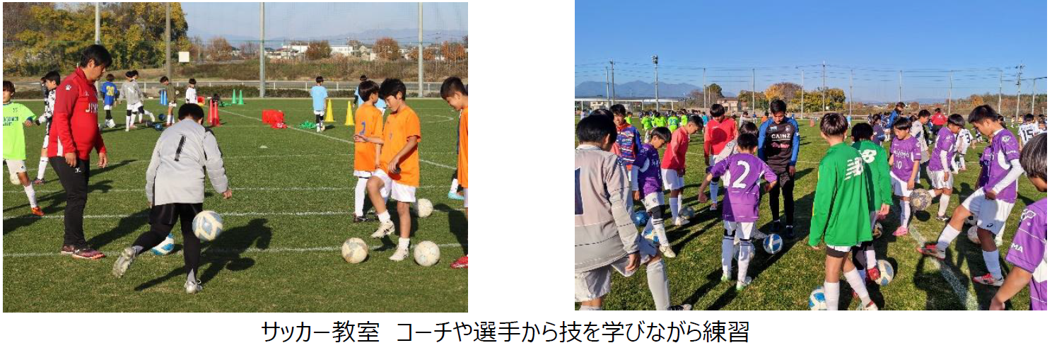 松村コーチや永井さん、そしてザスパ3選手から直接アドバイスを受けたり、プロのプレーを間近で見る子どもたちの表情は真剣そのもの。試合後にもかかわらず、プロ選手や他チームの仲間との交流に笑顔があふれ、元気いっぱいにサッカーを楽しむ姿が印象的でした。