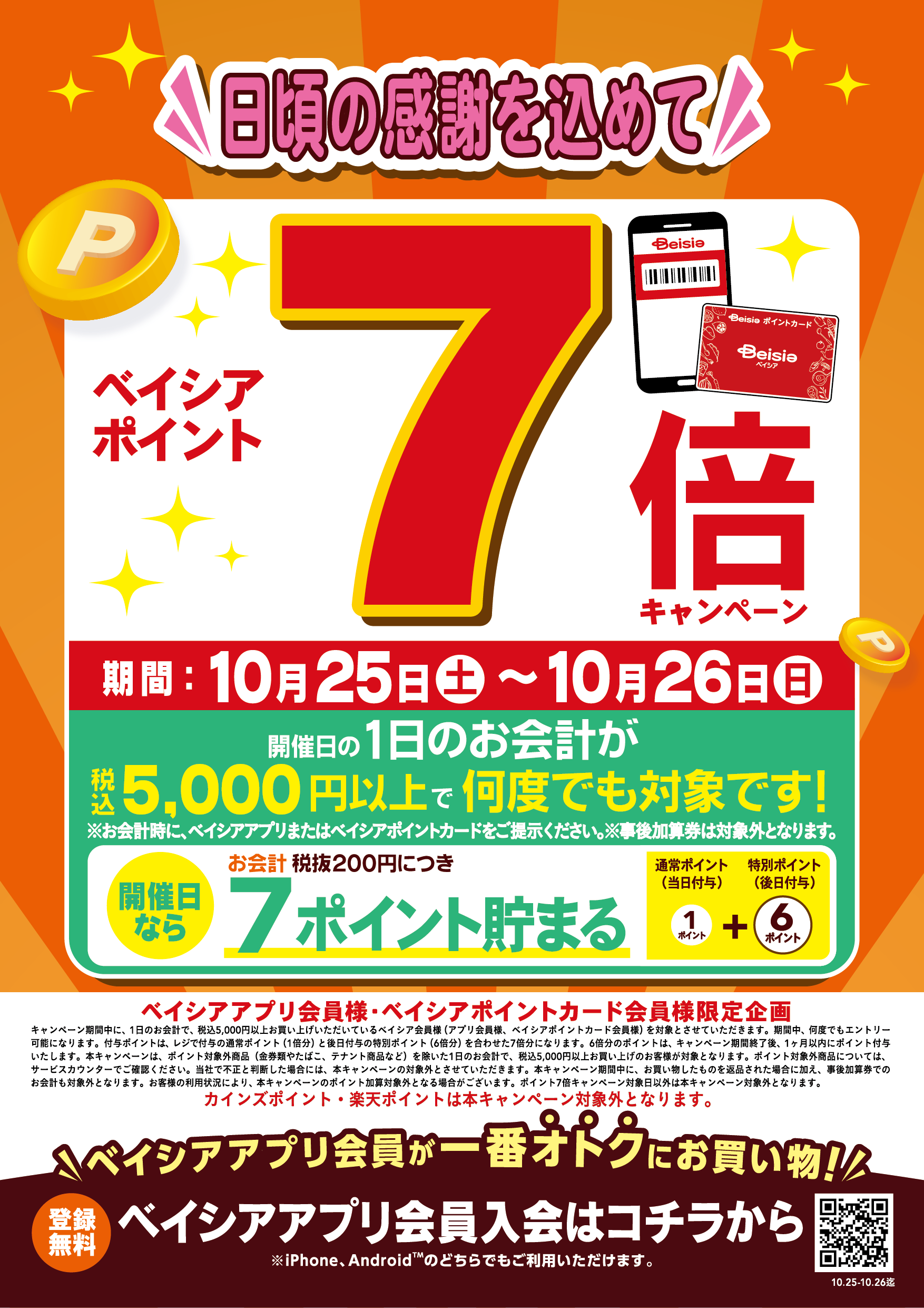 【10月25日(土)26日(日)限定】ベイシアポイント7倍キャンペーンのお知らせ