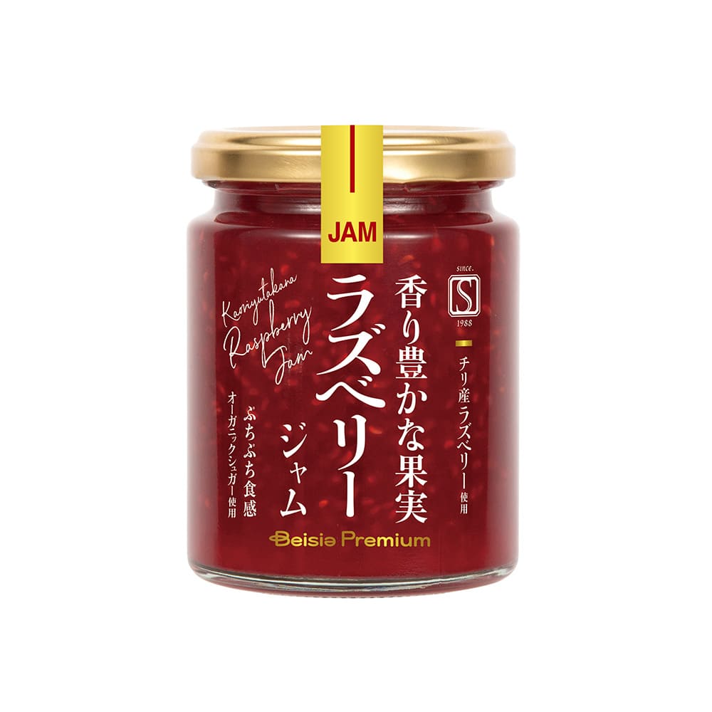 華やかなラズベリーの香りが特徴。果肉のつぶつぶ食感が楽しめます。オーガニックシュガー使用で、やさしい甘さ。