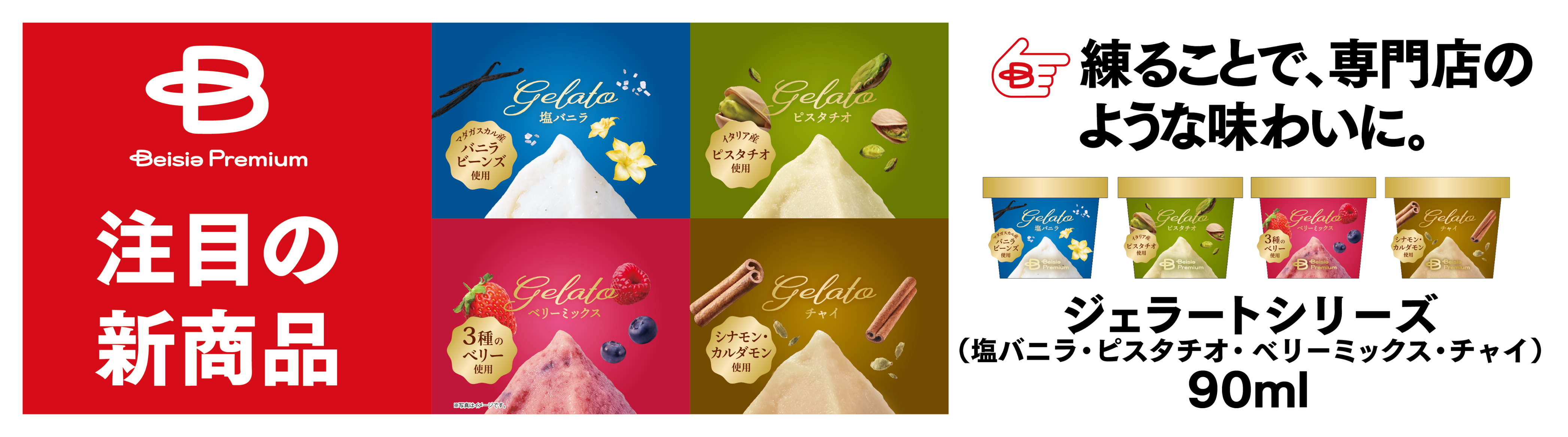 株式会社ベイシア(本社:群馬県前橋市、代表取締役社長:相木孝仁)は、当社プライベートブランド(以下PB)「Beisia Premium(ベイシアプレミアム)」の新商品として、4月1日(水)より「ジェラートシリーズ」をはじめ、冷凍食品、ジャムなど新商品19品を発売いたします。「Beisia Premium」は、お客様の暮らしに寄り添う小売のプロ集団・ベイシアが「生活品の目利き」として自信を持ってお届けする、高品質と低価格を両立させた渾身のPBです。