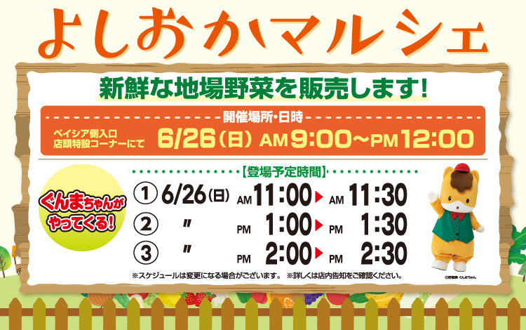 6月26日(日)ベイシア前橋吉岡店でよしおかマルシェを開催いたします